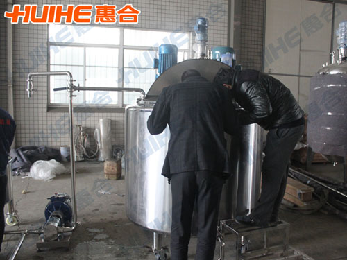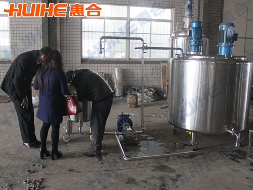 英國客戶需要加工類似蜂蜜的糖漿,欲采購不銹鋼容器用于其產(chǎn)品的加工。經(jīng)過與業(yè)務(wù)員的多次溝通協(xié)商,客戶于2014年11月底在我公司訂購1000L和100L各一臺(tái)乳化罐。歷時(shí)1個(gè)多月,設(shè)備終于順利完工。2015年1月9日,英國客戶來工廠驗(yàn)貨,業(yè)務(wù)員和技術(shù)工程師對(duì)乳化罐作了詳細(xì)的講解,客戶對(duì)設(shè)備較為滿意。