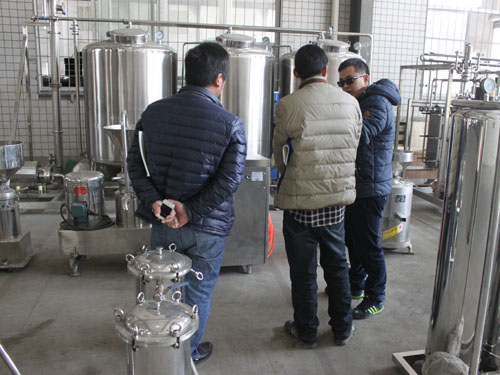 2015年3月2日,河南客戶自主創(chuàng)業(yè)需要采購一套豆?jié){生產(chǎn)線設(shè)備,來我公司考察并與業(yè)務(wù)員進行具體需求的洽談。下圖為業(yè)務(wù)員向客戶講解工廠設(shè)備:
