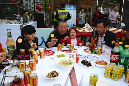 在這兒有6道冷盤、12道運河名菜組成的運河美食嘉年華典藏菜肴。設(shè)席30桌一字擺開100米,憑票入席,300名幸運的中外游客與杭城市民一邊在品味豐盛的運河名菜。