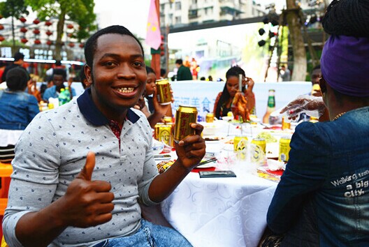 圖為活動現(xiàn)場游在享用美食 胡耀剛 攝